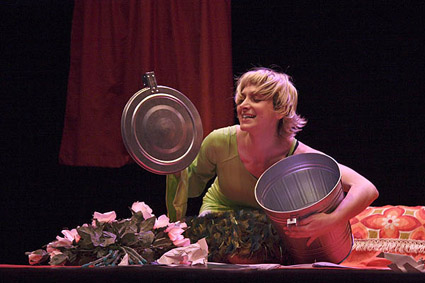 Una tragicomedia-tralalá con truenos de serie-B, bricolaje diabólico, María Callas, contorsionismos y danzas, cocktail de langostinos, música electrónica, pasión defenestrada, la vida en un micro-zulo, tarta de merengue, decepciones telefónicas, meditación trascendental, los Angeles de Charlie, moda-constrictor, masacre verde, promoción laboral, botas katiuskas… ¡Y muchas más cosas que no tienen nombre!