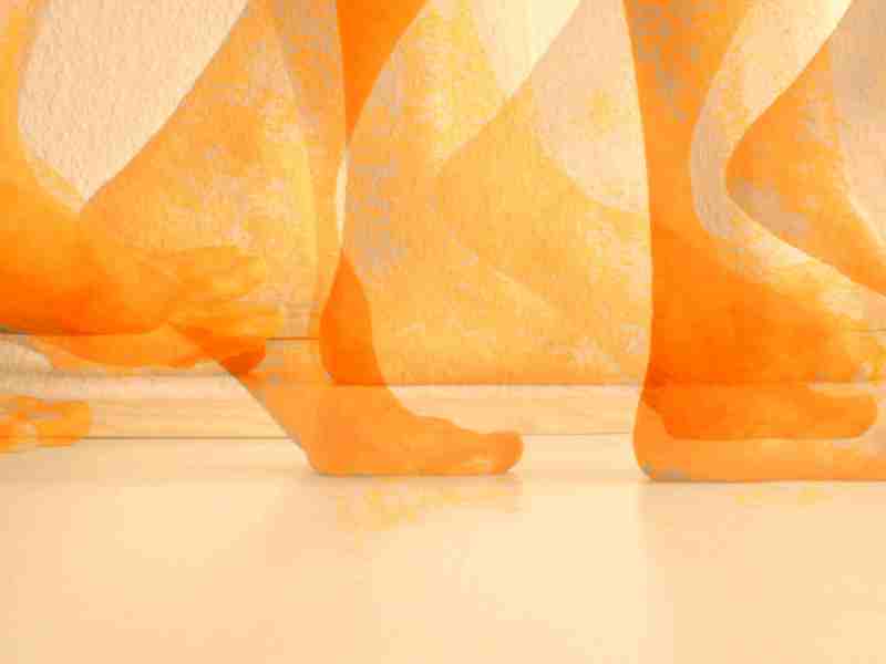Fortbewegung als Schritt-Schritt-Schritt. Ein Raum, von geografischen Zeichen interpunktiert. Wir können nur dahin gehen, wohin unsere Beine uns tragen . Krabbelnde Zehen. Zusammen umfassen wir das Land. Ziele. Fortbewegung ist Schritt-Schritt-Schritt. Schlurfende Knie. Ein gemeinsamer Gang gehört niemandem. Niemand watschelt so. Wir interpunktieren den Raum mit unseren Zeichen. Stapfen. Ein Einzelgang findet die Hände ein anderes. Springen, hopsen, hocken. Unsichtbare Ziele als Schritt-Schritt-Schritt. Unsere Füße tragen unsere Augen. Seitwärts-verkehrt-herum treten. Der Raum gehört niemandem. Flanierend-paradierender, herumhüpfend-gehender Gang.
