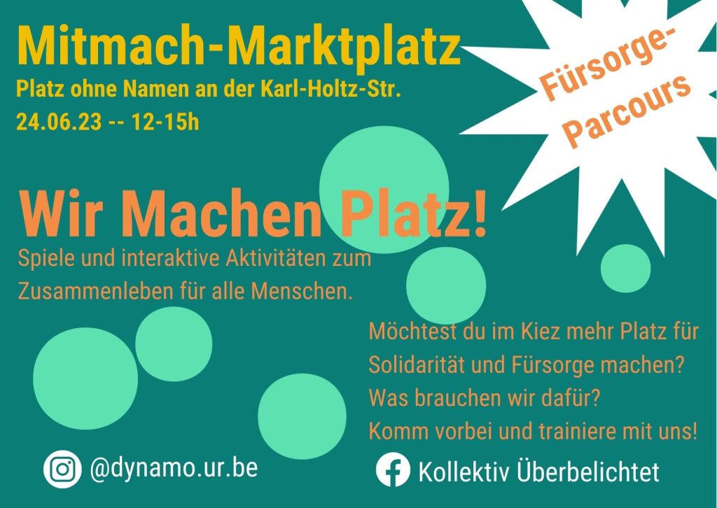 Als Dynamo für Urbane Bewegungen waren wir mit Katharina Iva Nagel (Kollektiv Überbelichtet) drei Wochen in der Umgebung vom Platz ohne Namen in Marzahn-Mitte. Wir haben die Bewohner:innen* auf dem Platz und bei Terminen mit unterschiedlichen Institutionen gefragt,